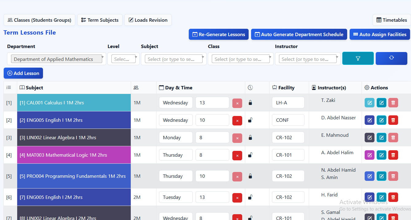 Automatically generates lessons and allocates facilities